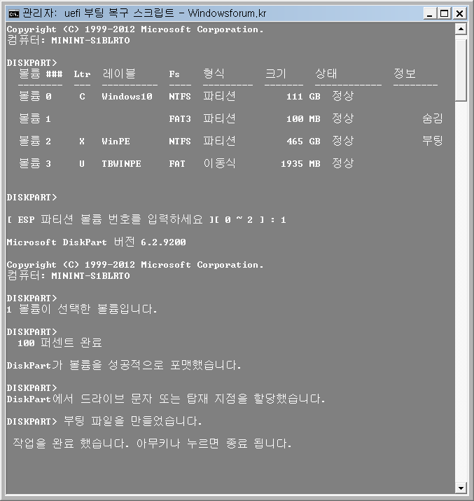 자 료 실 - UEFI 부팅 복구 배치파일 -2-