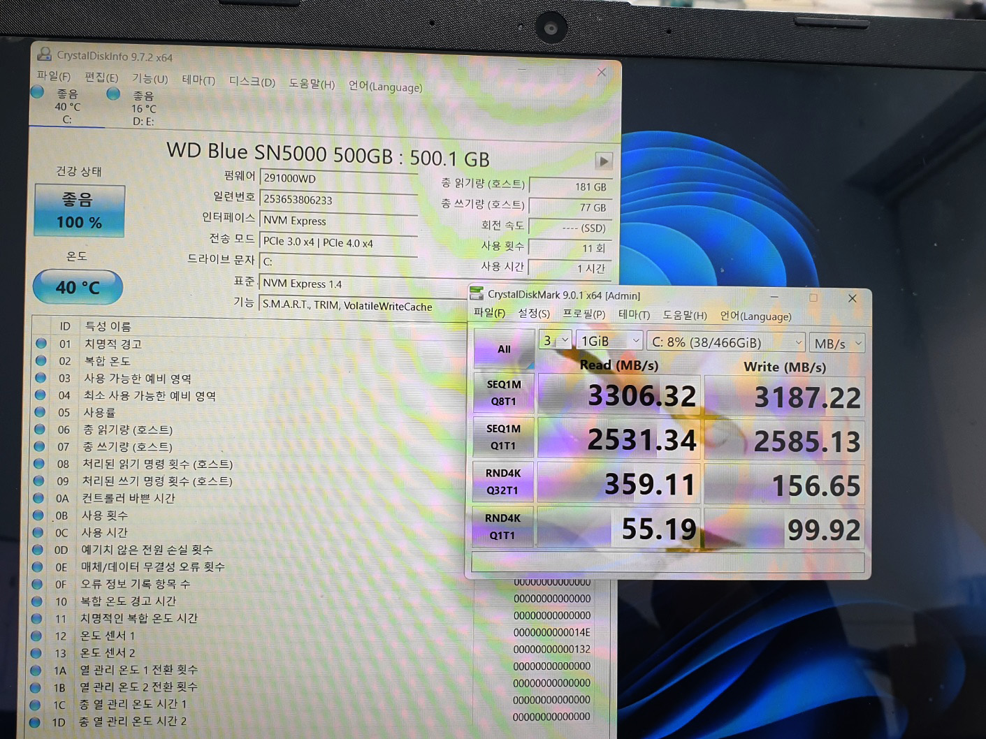 | 구분 | WD Blue SN5000 (500GB) | 키옥시아 KBG30ZMV (256GB) | 비고 |